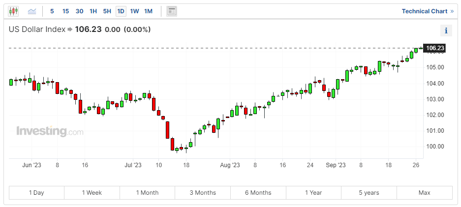 XM交易平台资讯:美元指数站上106关口 续创10个月新高