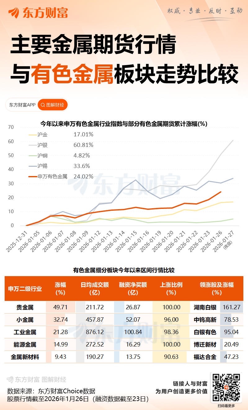 近期,黄金、白银涨势持续。Wind数据显示,北京时间1月26日,现货黄金和现货白银继续刷新历史纪录,现货黄金一度站上5100美元/盎司,现货白银一度站上110美元/盎司。