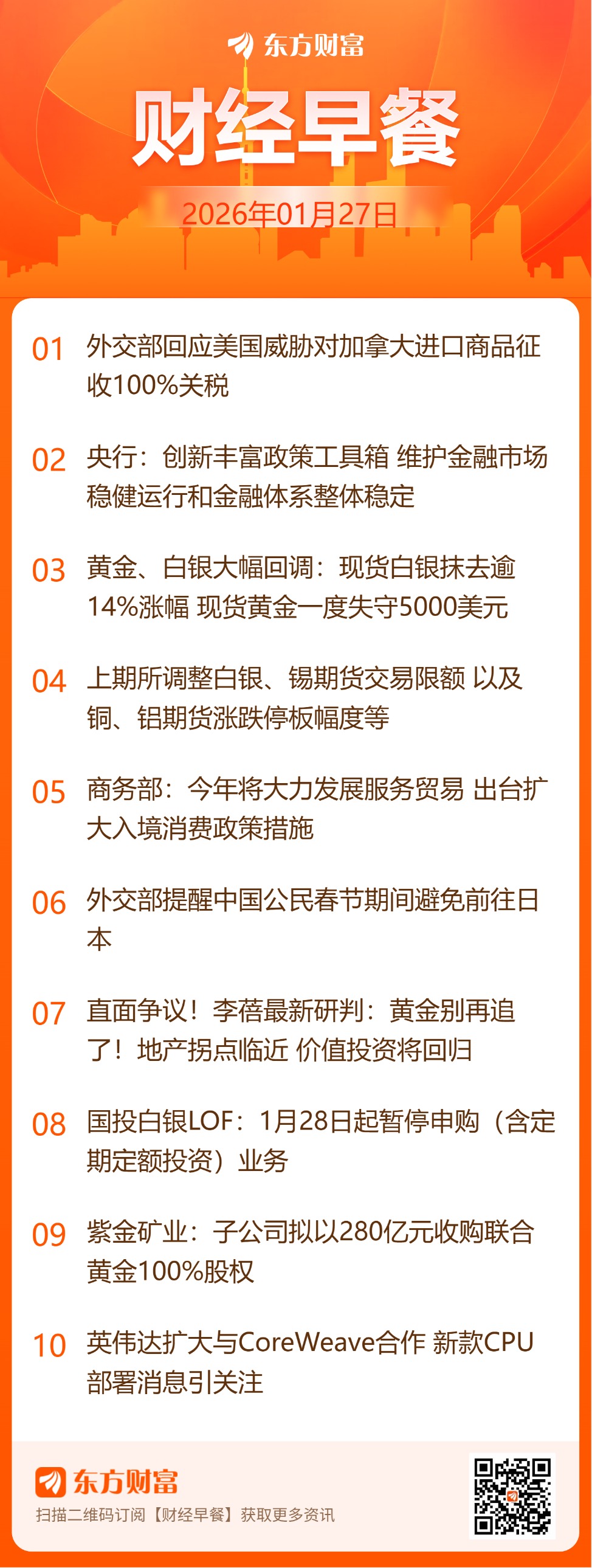XM交易平台资讯:东方财富财经早餐 1月27日周二