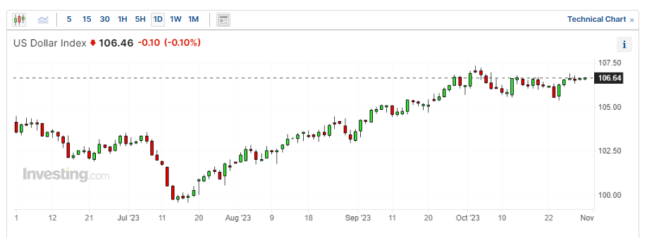 受美国经济走强迹象的提振,美元近来一直处于领先地位。美国9月消费者支出飙升,同时第三季度美国经济增长速度创近两年来最快。